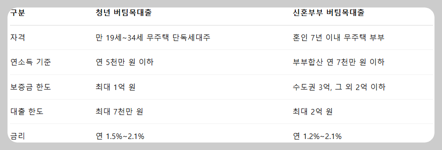 특히 청년과 신혼부부를 위한 조건이 다르게 적용되어, 본인의 상황에 맞는 대출을 선택하는 것이 중요합니다.